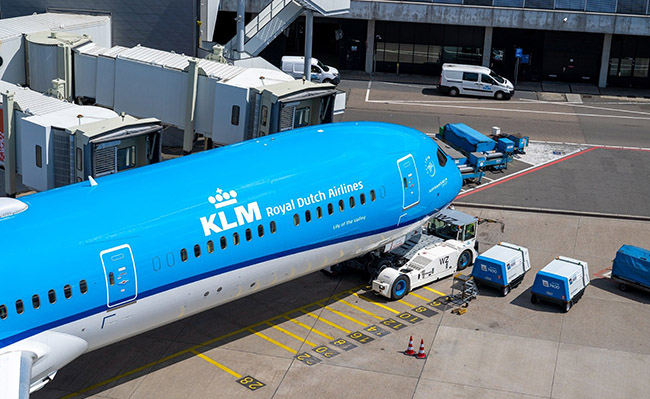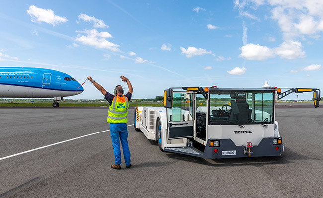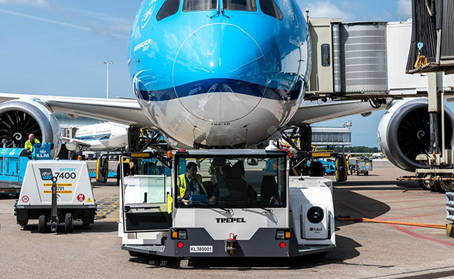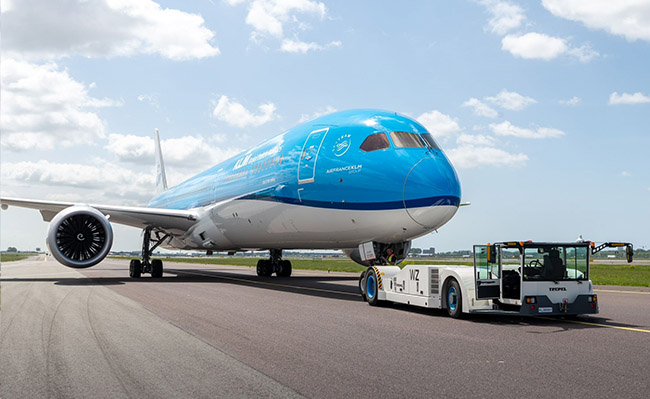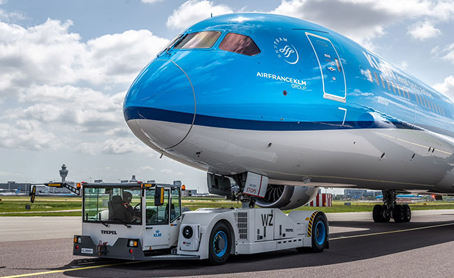 Skyteam Sustainable Flight Challenge : KLM 787 extended towing on departure foreshadows the future of the Aircraft Extended Towing Procedure developed by Trepel in partnership with Ecotug.
