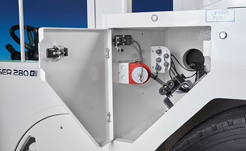 The CHALLENGER 280e electric conventional tractor is designed to handle a wide range of aircraft types up to the A350 and B787. Just like its diesel brother, the CHALLENGER 280e electric is equipped with hydro-pneumatic suspension, comfortable seating and heating / air conditioning options. World-class components ensure low maintenance costs and optimum lifetime.