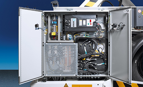 The CHAMP 70e NEO is based on a new concept of an electro-hydraulically operating power system. This power system is divided into 3 working and auxiliary functions. The split system allows to purposefully direct energy to the corresponding function, and thus a longer use of battery power. Cutting-edge technology makes it possible to recuperate energy when lowering the main platform. The durable electric components of the powertrain ensure low maintenance cost.