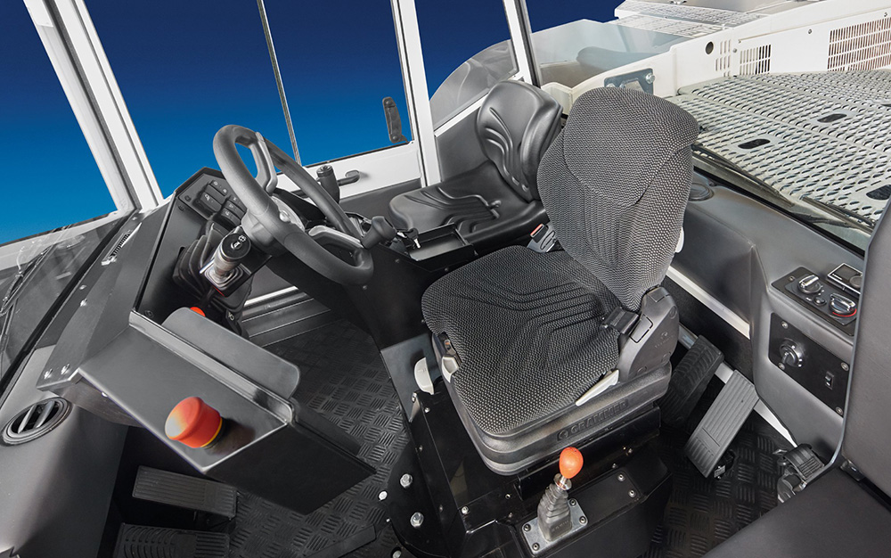 This state-of-the-art tractor includes oversteer protection – with anti-collision and obstacle detection protection options – as well as superior comfort attributable to hydro-pneumatic suspension.